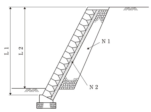 - 擁壁の直高L2, 裏込めコンクリートN1