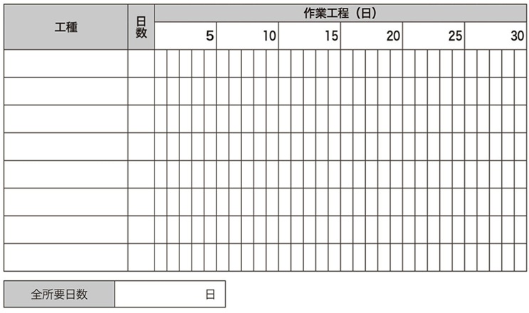 バーチャートは縦軸に全体を構成する全ての部分作業(工種)を列記し、横軸に工期(日